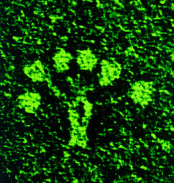 Anticorpos antimitocôndria vistos em imunofluorescênciaindireta em corte de rim de rata.